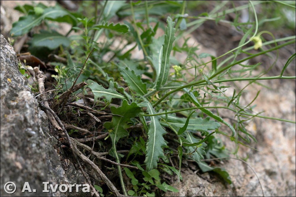 Planta sufruticosa, hasta de 60 cm. Cepa lignificada, sin apenas restos foliares. Tallos ramificados desde la mitad, laxa o densamente pelosos en la base, glabrescentes más arriba. Hojas basales no arrosetadas, de obovadas a oblanceoladas, sinuado-dentadas o pinnatífidas, adelgazadas en un largo pecíolo; las caulinares similares a las basales, semiamplexicaules o