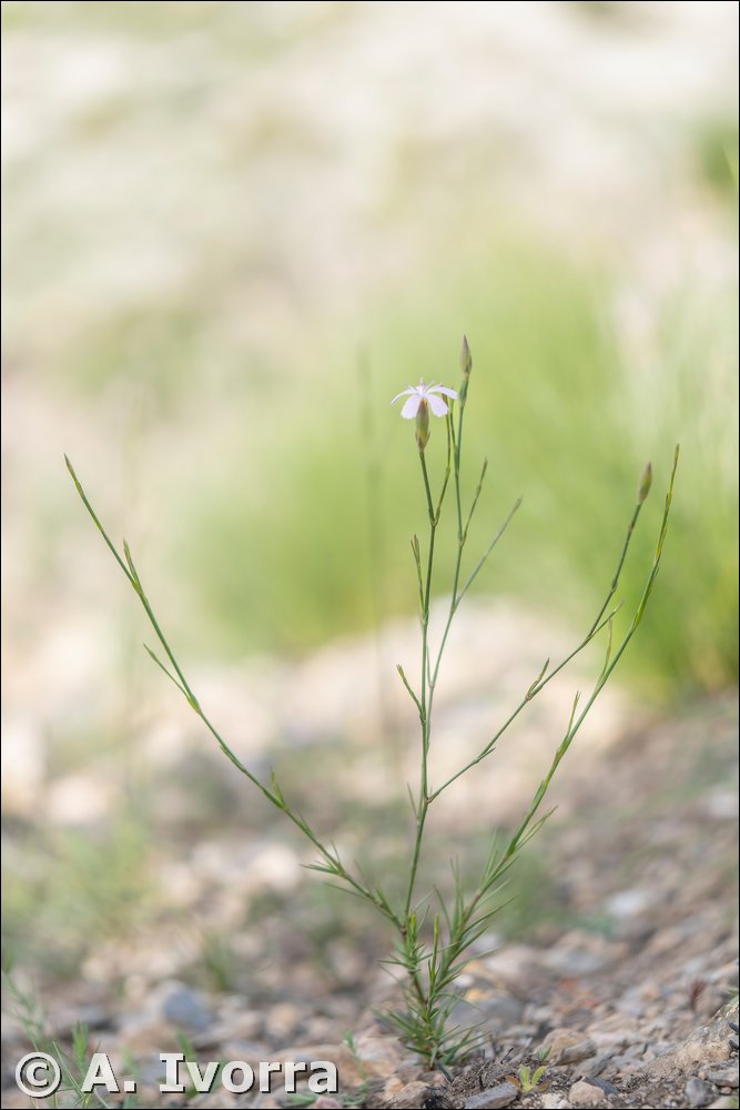 de 1’5 cm de diámetro, con 5 pétalos barbados diferenciados en uña y limbo. Androceo